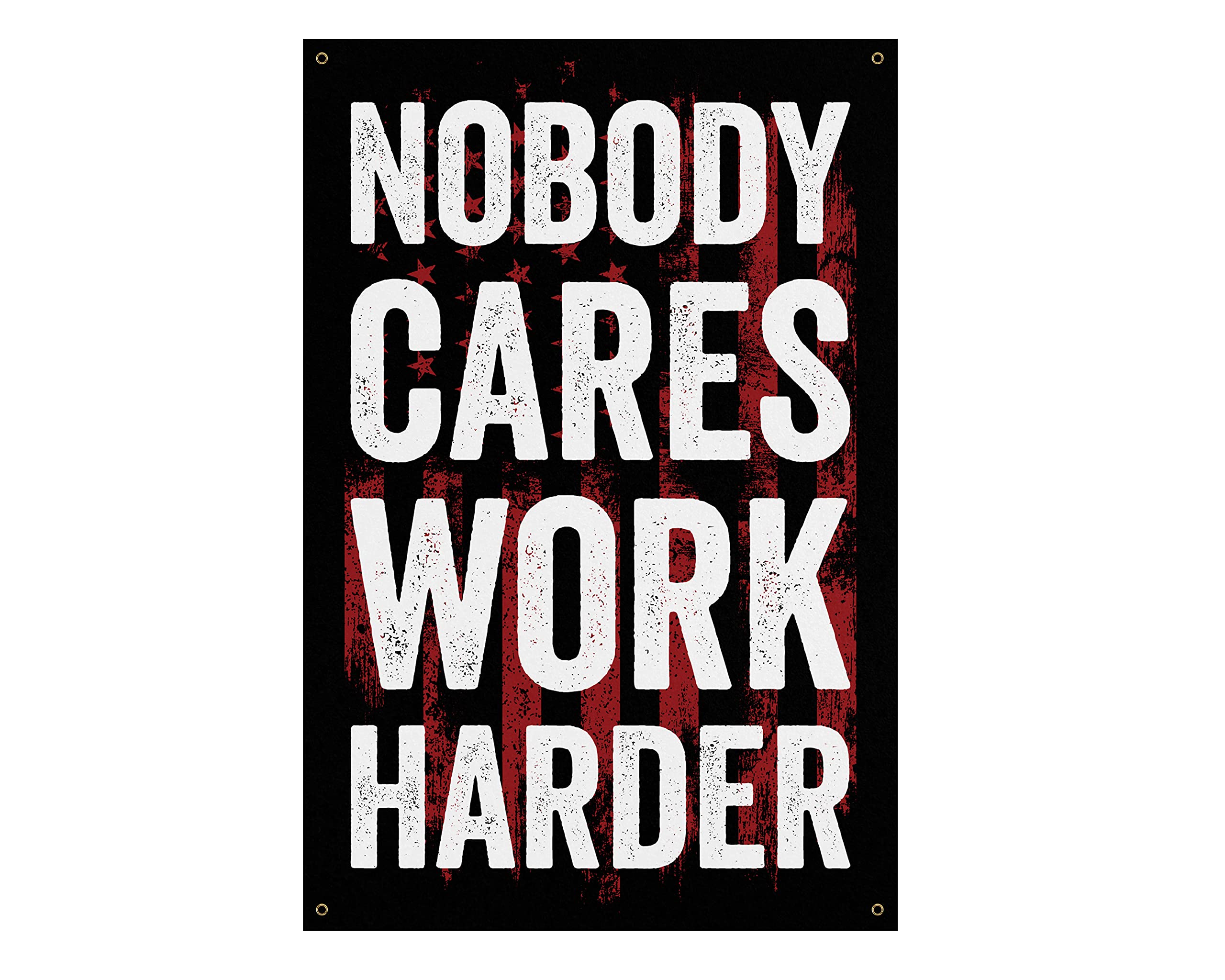Amazon Com Nobody Cares Work Harder Banner Home Gym Decor Large Quote Wall Art Fitness Usa Patriotic 24 X 36 Inches Office Products